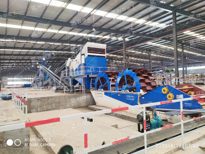 輪斗洗砂機(jī)在水流作用下,清洗掉沙子中的雜質(zhì)