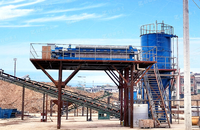 主要配置:振動(dòng)篩、雙輪洗砂機(jī)、細(xì)砂回收一體機(jī)、沉淀罐、帶式壓濾機(jī)