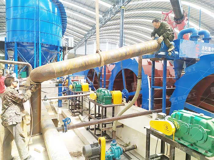 使用洗砂機(jī)在洗砂之后,用專業(yè)設(shè)備進(jìn)行細(xì)沙回收,脫水,風(fēng)干,獲得其中的有用砂石和清澈用水;