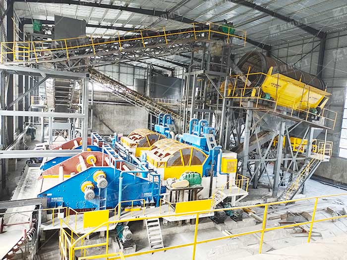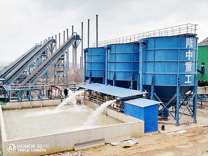 洗砂機(jī)在工作過(guò)程中,都會(huì)產(chǎn)生大量的泥水、廢水,砂石洗選廢水和生活污水需要經(jīng)處理達(dá)標(biāo)才能排放或循環(huán)利用。通常的處理方法為設(shè)置沉淀池,配置細(xì)砂回收機(jī)共同運(yùn)轉(zhuǎn),細(xì)砂回收機(jī)可通過(guò)渣漿泵將濃度≦40%的泥漿注入水力旋流分離器進(jìn)行分離,分離出的粗粒部分進(jìn)入脫水篩脫水回收,從而提升資源利用率,實(shí)現(xiàn)較大的收益。