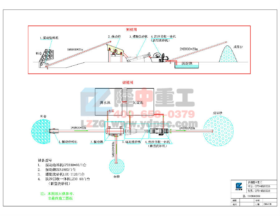 洗沙回收一體機(jī)在洗砂生成線中的安裝圖紙